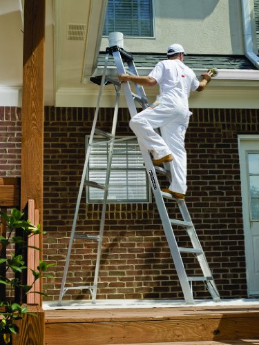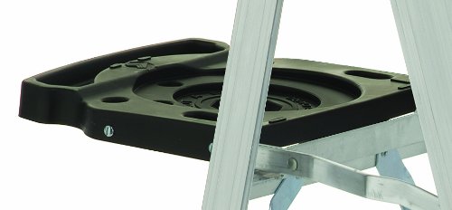 Buy Low Price From Here Now 368 Features: -Aluminum step ladder.-Handy bucket holder.-250 lbs Duty rating.-Medium duty commercial.-Yellow molded tool tray top slotted for paint roller tray.-Spill Proof paint shelf with rag rail and tool holders.-Slip resistant tread on steps, molded shoes.-Bottom and top steps braced.-Hi strength heat tempered heavy duty aluminum. Dimensions: -Dimensions: 24.5'' H x 4.13'' W x 8'' D.